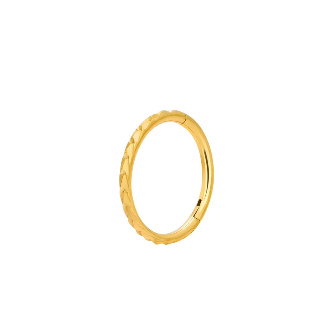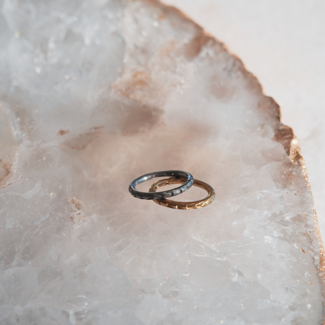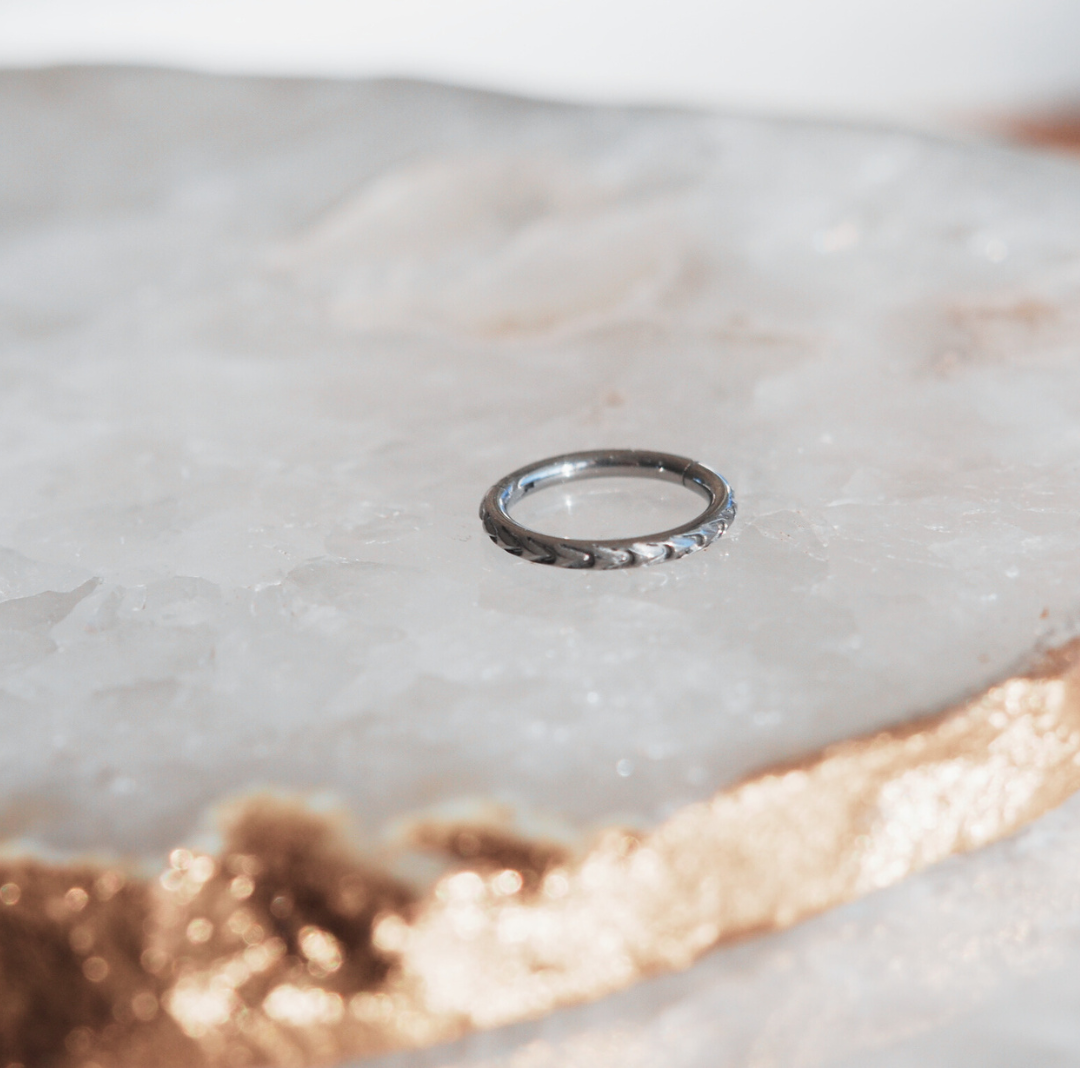 Sharp detail, smooth comfort. Arrow pairs a sleek hinged clicker with a repeating arrow motif for subtle texture and modern edge. Understated from afar, striking up close — this is your go-to for everyday wear with a hint of attitude.