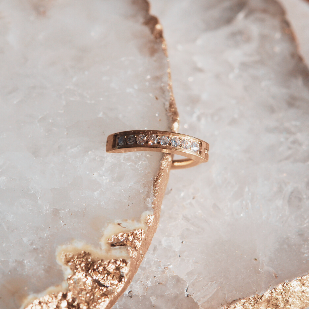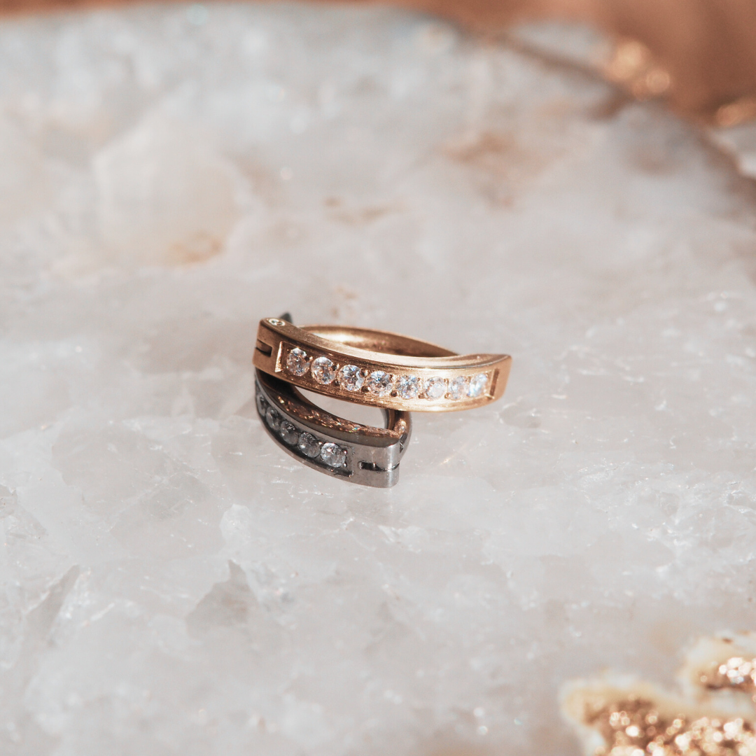 Shine without the struggle. Radiate gives you the same effortless hinged clicker design as Embrace, but with the added sparkle of cubic zirconia. Light-catching, comfortable, and perfect for those days you want your belly ring to glow as brightly as you do.